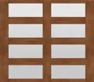 The Canyon Ridge® Modern collection gives you the freedom to choose from a variety of door designs, each crafted to complement today’s contemporary homes. The Plank Design with 6″ horizontal boards offers a clean, modern profile, and you can personalize it further by adding windows in different configurations. Select long or short windows down one side, down both sides, or go all-in with windows across the entire door for maximum light and a dramatic effect.