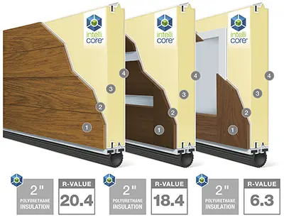 Each door is packed with 2″ Intellicore® polyurethane insulation, keeping your garage comfortable and energy efficient. R-values range from 6.3 to 20.4, depending on your chosen design.